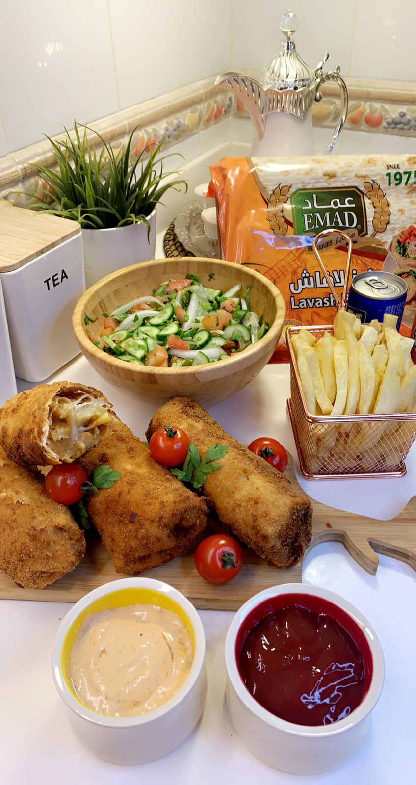 سندوتشات كرسبي دجاج باستخدام خبز لافاش من مخابز عماد